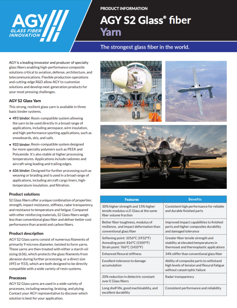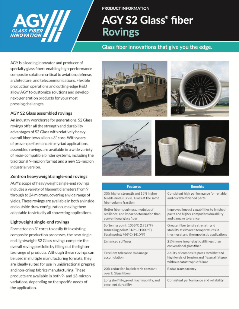 AGY’s product lineup includes several specialized glass fiber solutions: